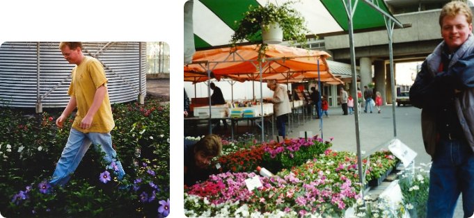 Arie Bouman start met Arie Bouman Tuinplanten B.V.. In het hoogseizoen verkoopt hij mooie planten voor buiten op weekmarkten. In het laagseizoen worden er thuis rozen opgepot.