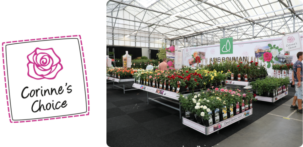 Onze kwekerij blijft een belangrijk onderdeel van het bedrijf. We introduceren ons eigen rozenmerk Corinne’s Choice waar de jongste dochter van Arie het gezicht van is.